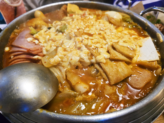 說起韓料,部隊火鍋絕對是必點的一道單品。他家的量很足,適合兩三個人一起分享。鍋底選用地道韓式醬料熬制,濃郁鮮香中帶著恰到好處的微辣,咕嘟咕嘟煮開時,香氣撲鼻而來。鍋中食材豐富多樣,Q彈的芝士年糕、鮮嫩的蟹柳、入味的魚餅、吸飽湯汁的辛拉面,當然還有足量的芝士,尤其拉絲的瞬間,簡直讓人忍不住大快朵頤。