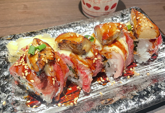 火炙系列壽司則是創新與傳統的完美結合,其中火炙焦糖三文魚壽司最受歡迎。噴槍的火焰瞬間掠過三文魚表面,讓糖粒結晶形成薄脆的焦糖外殼,內裡的三文魚依舊保持著豐腴的油脂感,入口後焦糖的甜與三文魚的鮮在口中交織,甜咸平衡得恰到好處。火炙芝士牛肉壽司也不錯,嫩滑的牛肉片覆蓋著滿滿的芝士,經過炙烤後芝士呈現出誘人的金黃色,半融化的芝士帶著拉絲的纏綿,牛肉的咸香與芝士的奶香相互融合,一口下去香氣四溢。此外,厚切的三文魚腩壽司、醬香味十足的鰻魚壽司也值得一試,新鮮的食材搭配匠心的調味,每一口都是日式料理的精致與本味。